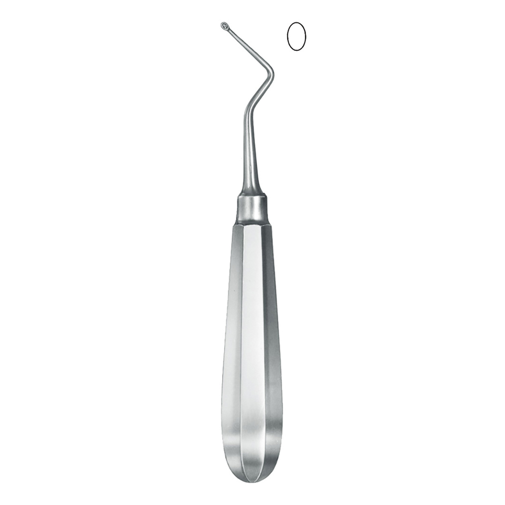 - Features an oval-shaped blade that allows for effective tissue removal and bone contouring.
